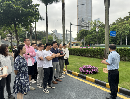 教学活动伊始,在中集集团可持续发展总监、中国上市公司ESG专委会专家李柱文的带领下,师生们首先参观了“古榕树”、“老厂牌”、“模块化装配式课室”等中集标志性地标,然后沿着中集“自强不息路”和“共同事业大道”领略中集文化,深刻体会到了中集“自强不息、追求卓越”的企业精神。