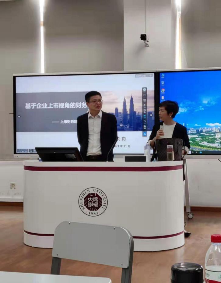 2021年11月7日,深圳大学硕士毕业六年的校友,现任开源证券投资银行执行董事的朱舟,在深圳大学汇文楼,给2021级MBA的同学们,上了一堂干活满满、生动有趣的案例实践课程。