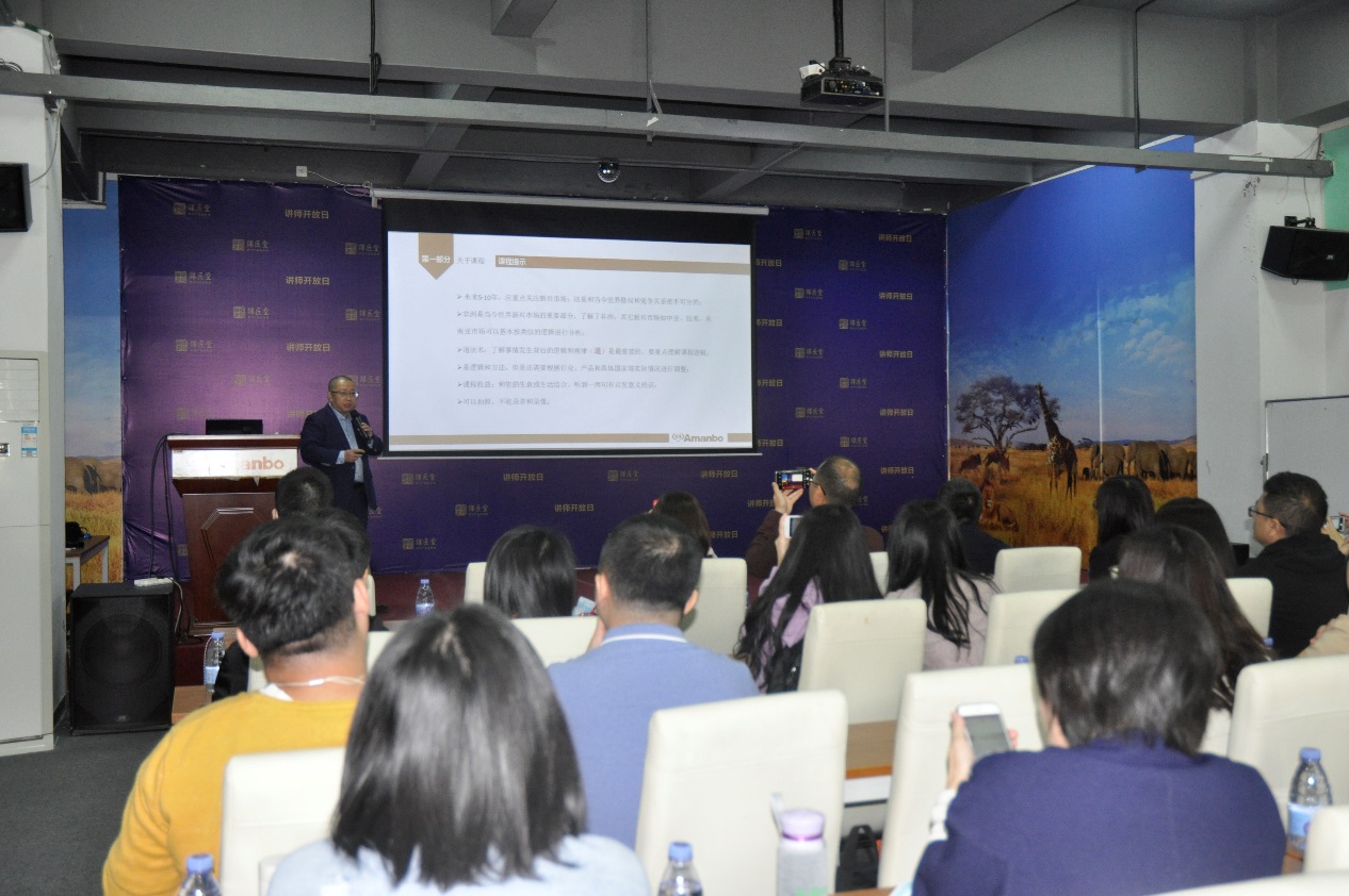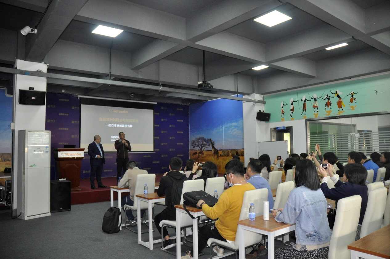 之后公司负责人廖旭辉先生为MBA师生们安排了交流座谈会。在座谈会上,廖先生向我们详细介绍了Amanbo的运营模式。该公司创新性地运用“OSO”(ONLINE+SOCIAL+OFFLINE)线上线下相结合的立体营销策略,通过线上商城+线下展厅&本土化运营推广团队,为中非贸易搭建便捷桥梁,也为合作伙伴们提供极具价值的打开非洲市场的钥匙。在交流会上,廖先生还就Amanbo平台的发展战略,从国际宏观环境视角,在非洲的蓝海现状和我国的政策支持方面分析了非洲市场的机会和挑战,深入浅出的讲解结合极具个人风格魅力的诙谐幽默语言感染着团队的每一位成员,也让现场的笑声和掌声不断。