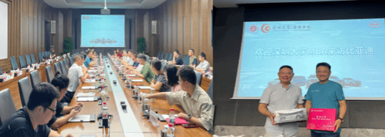 进入到会议室,比亚迪品牌及公关处副总经理刘加庆向深大师生们如数家珍般的作了比亚迪商业模式实践的介绍,并与同学们热烈讨论。比亚迪不仅通过垂直整合掌握产业链关键环节,更通过技术品牌化、体验多元化的策略,实现从产品制造商向出行解决方案提供者的转型,这种将硬核技术与用户体验完美结合的商业模式,为同学们提供了宝贵的商业实践案例。